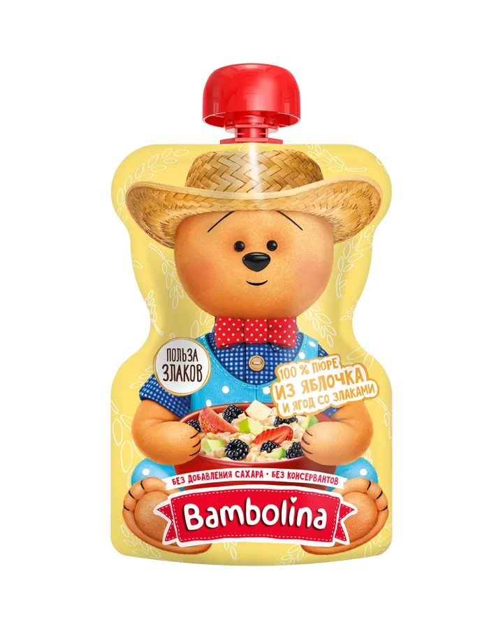Пюре Bambolinа Яблоко-клубника-ежевика-злаки с 6 мес 130 г