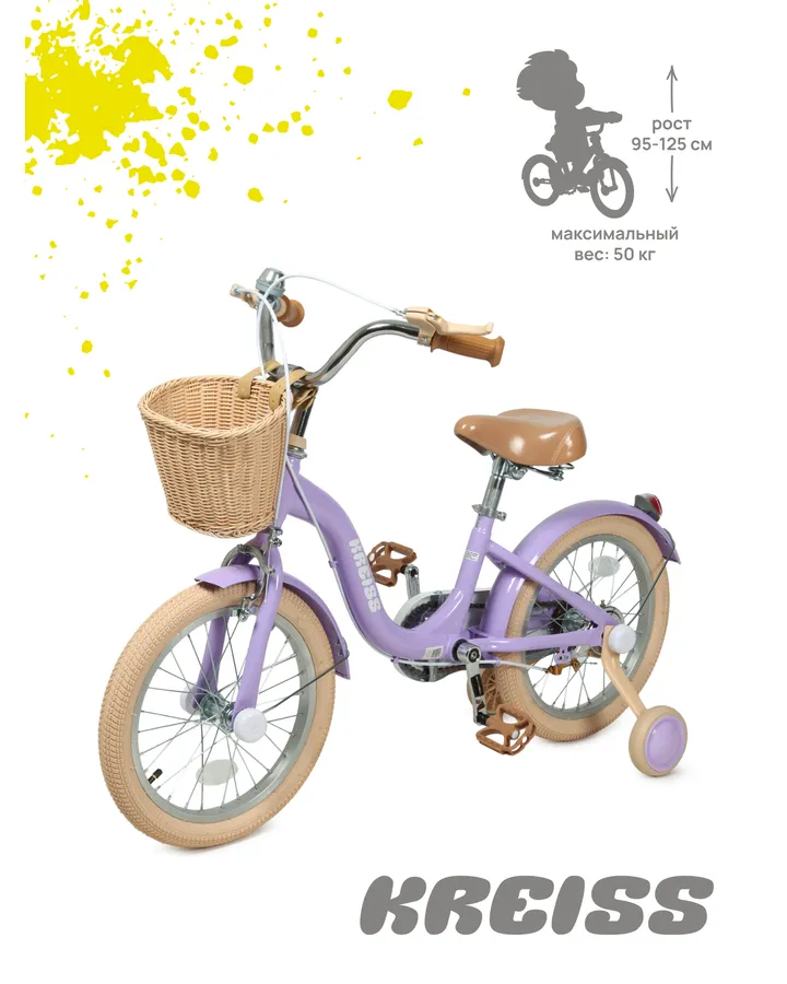 - Велосипед 16 дюймов — подходит для детей от 4 до 6 лет (рост 105–120 см, вес 17–22 кг). Хороший выбор для перехода на двухколесный велосипед, оснащается удобным сиденьем и регулируемым рулем.