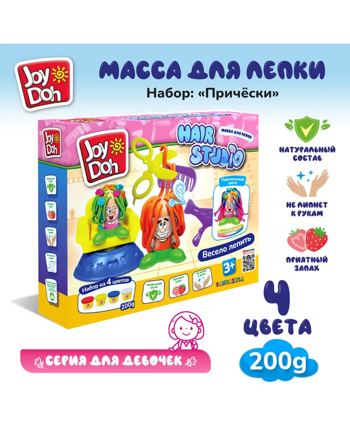 Масса для лепки Joy-Doh Прически студия 4 цв.