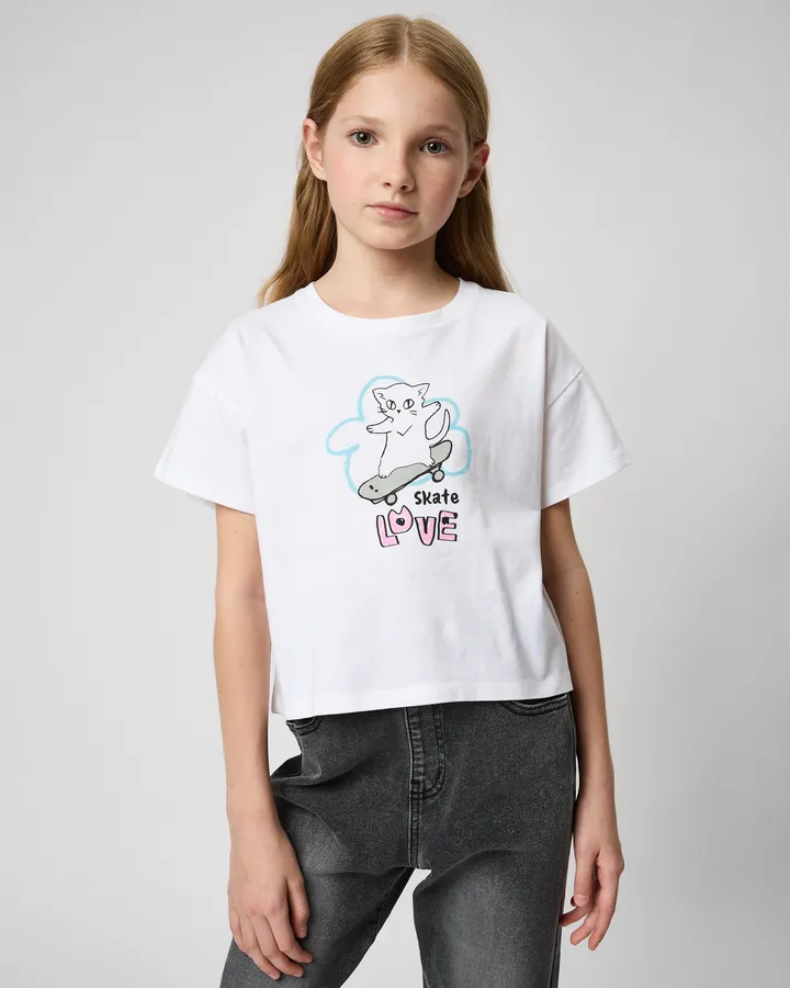 - Футболки для девочек и майки с принтами (цветы, бабочки, герои мультфильмов): Базовые элементы гардероба, которые подходят для игр и прогулок. Принты делают одежду более интересной для детей.