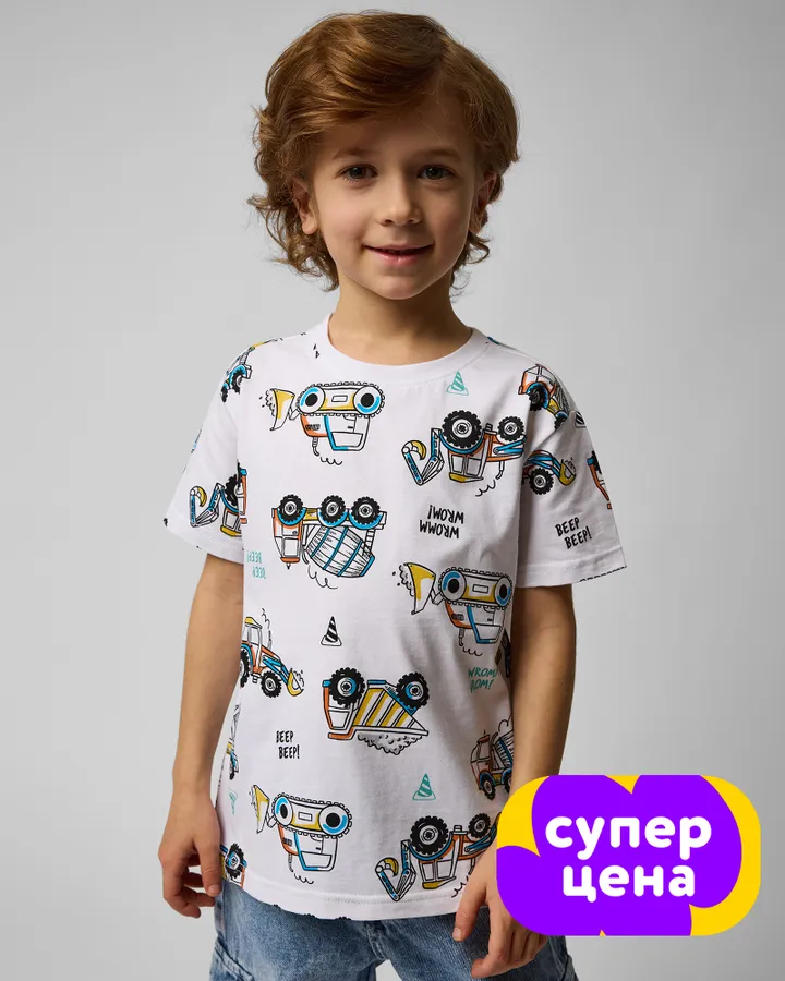 - Футболки для мальчиков: Базовый элемент гардероба, который подходит для повседневной носки. Принты делают футболки яркими и привлекательными для детей.