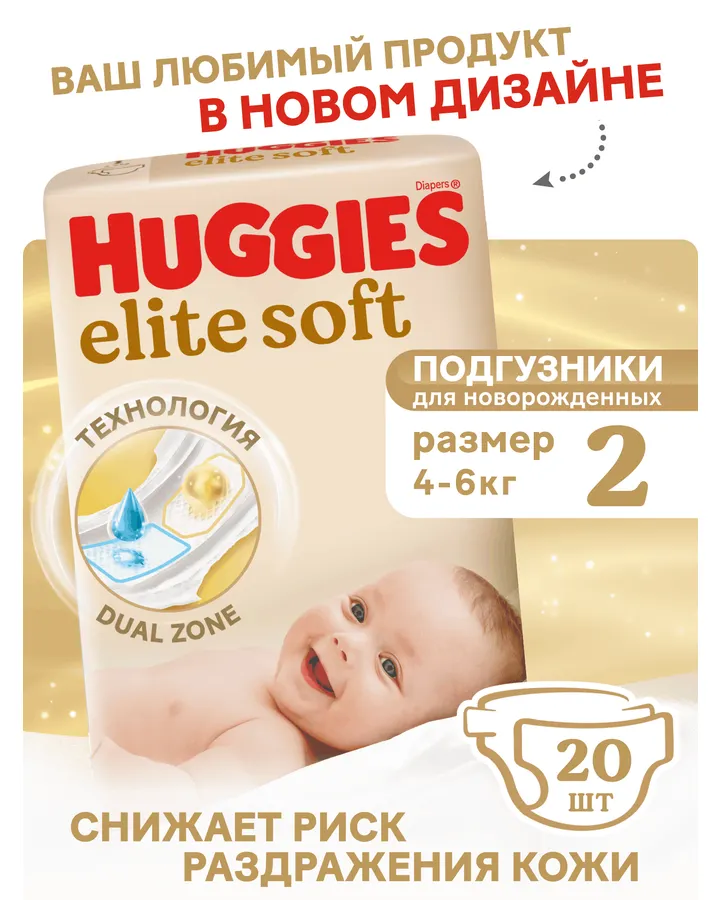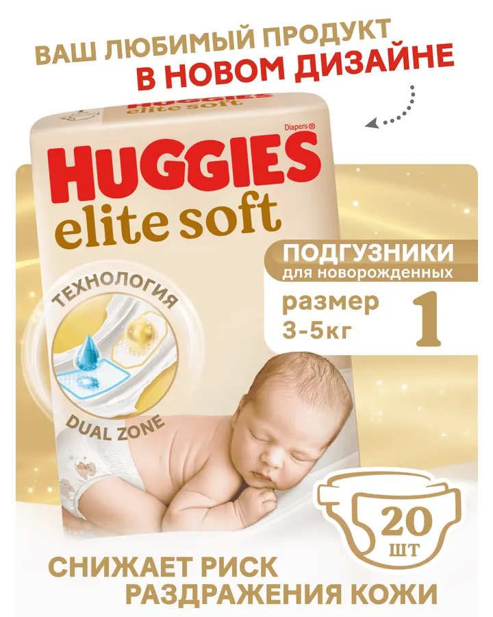 5Подгузники Huggies Elite Soft для новорожденных 1 (3-5 кг) 20 шт.👌
