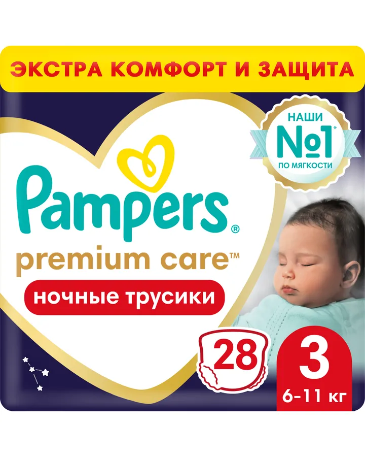 - 5Трусики Pampers Premium Care ночные 3 (6-11 кг) 28 шт.