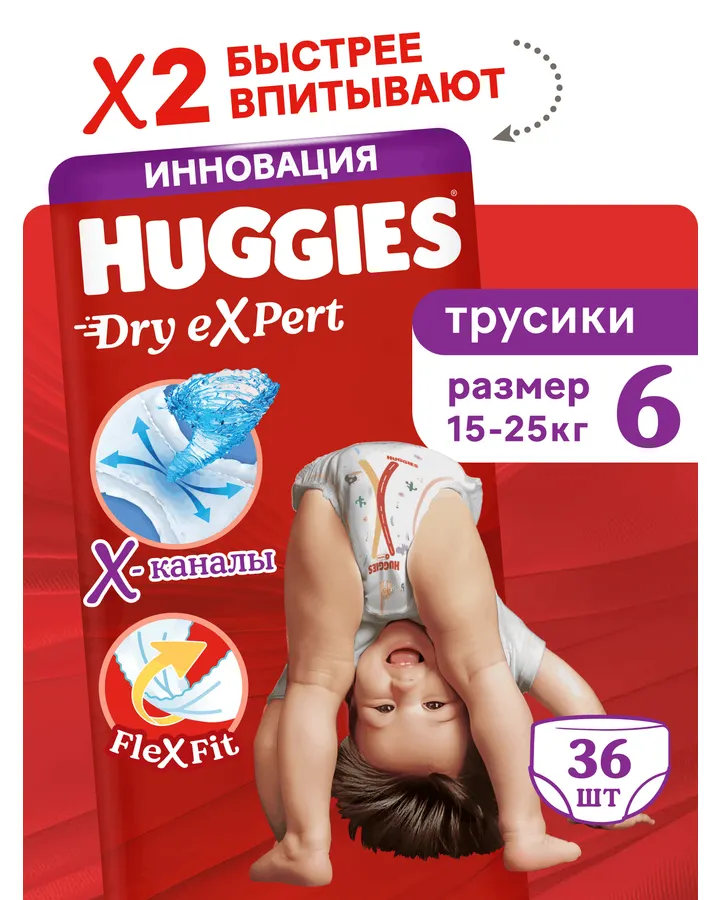 Трусики Huggies Dry eXpert 6 (15-25 кг) 36 шт.