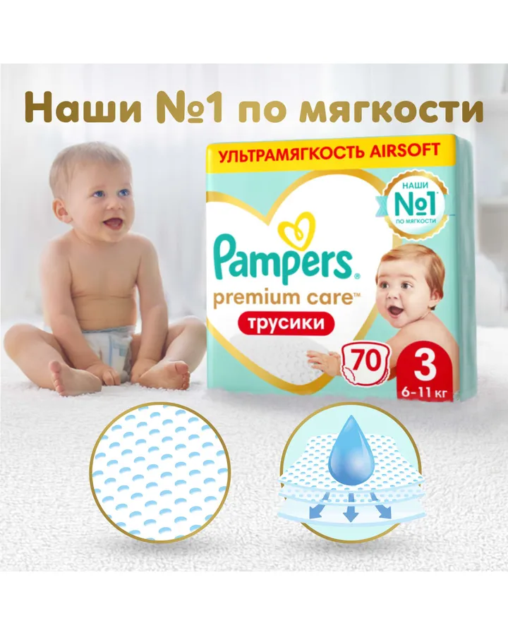 - 5Трусики Pampers Premium Care 3 (6-11 кг) 70 шт.