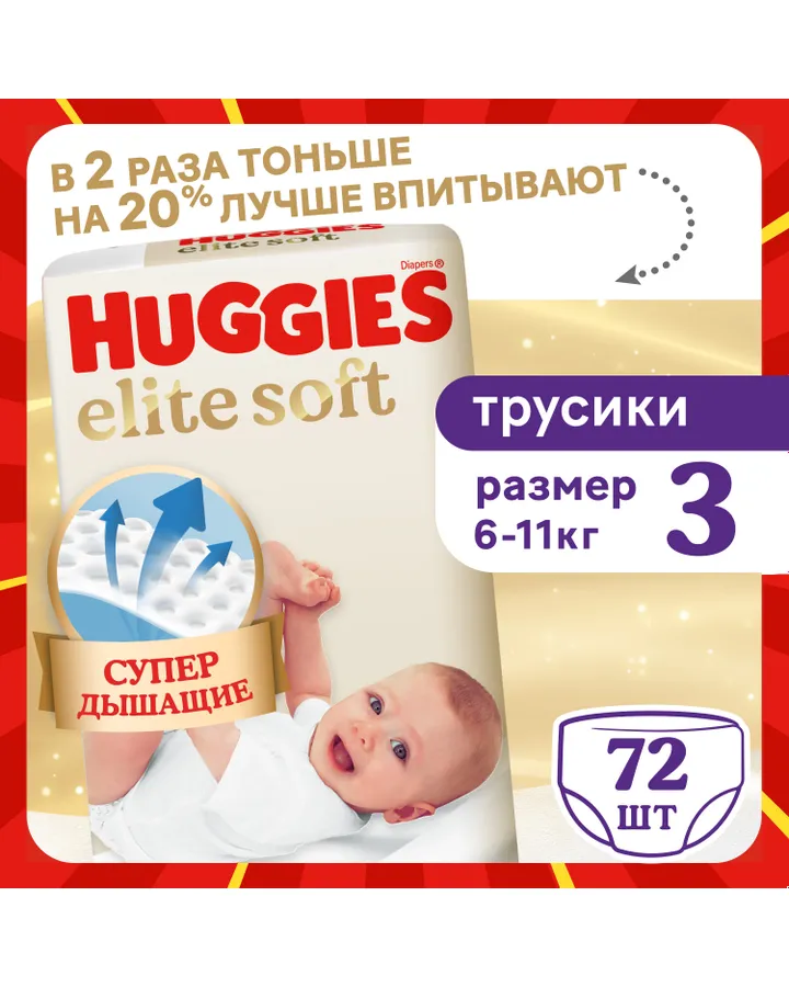 5Подгузники Huggies Elite Soft 3 (5-9 кг) 72 шт.