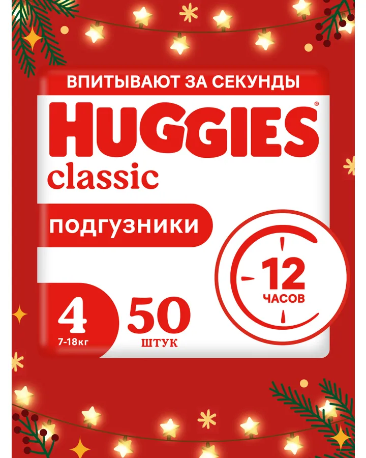 5Подгузники Huggies Classic 4 (7-18 кг) 68 шт.