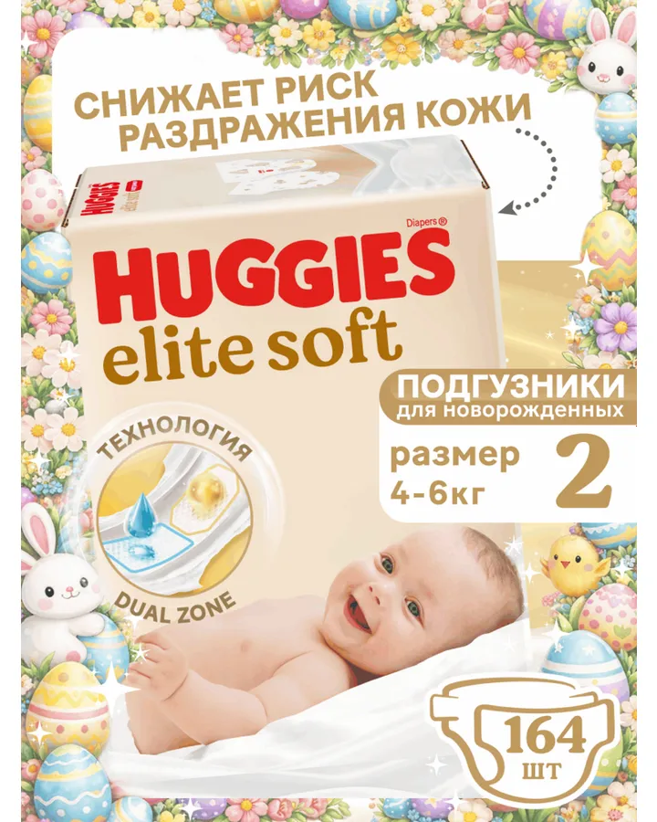 5Подгузники Huggies Elite Soft 2 (4-6 кг) 164 шт.Подгузники хорошие , ребенку подошли прям с рождения, нет раздрожений