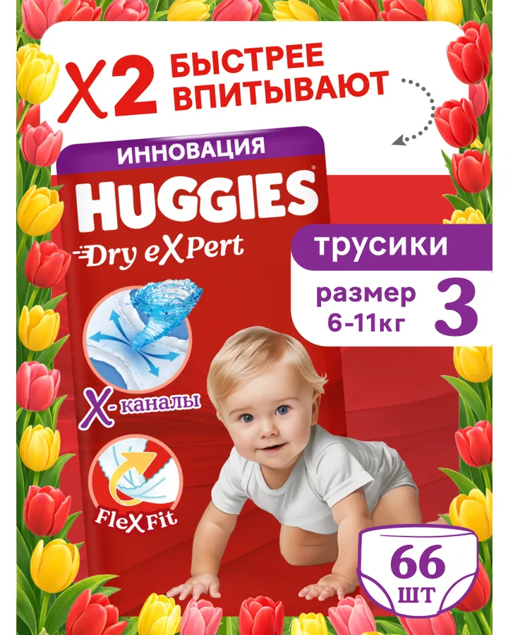 Трусики Huggies Dry eXpert 3 (6-11 кг) 66 шт.