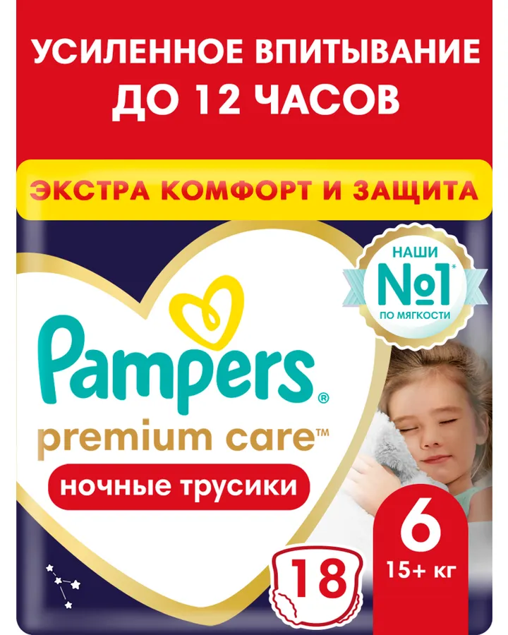 Трусики Pampers Premium Care ночные 6 (15+ кг) 18 шт.