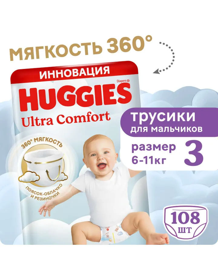 Трусики Huggies Ultra Comfort для мальчиков 3 (6-11) 108 шт.