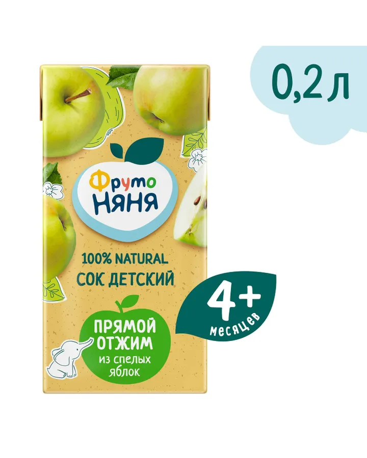 Сок ФрутоНяня Яблоко с 4 мес 0.2 л