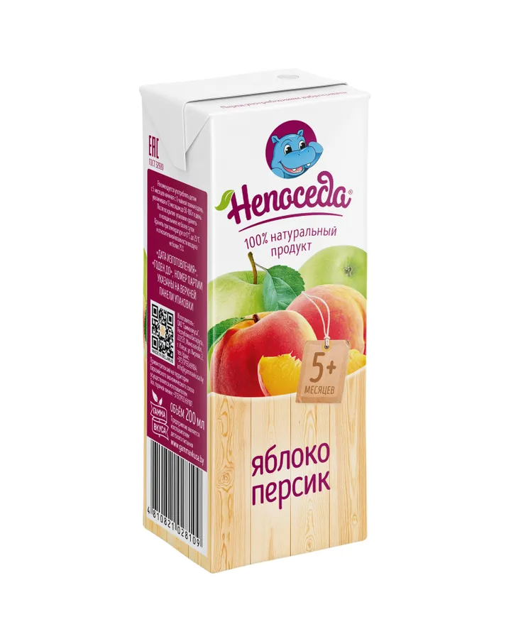 Нектар Непоседa. яблоко-персик с мякотью 200мл с 5месяцев