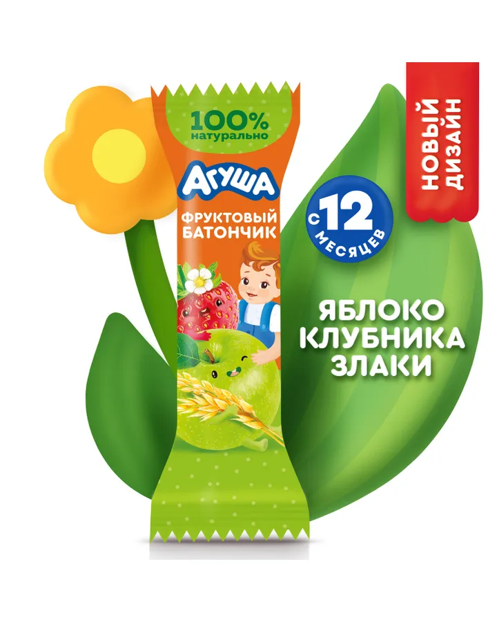5Батончик Агуша Полезный перекус яблоко-клубника-злаки 15г с 12месяцевВкусно