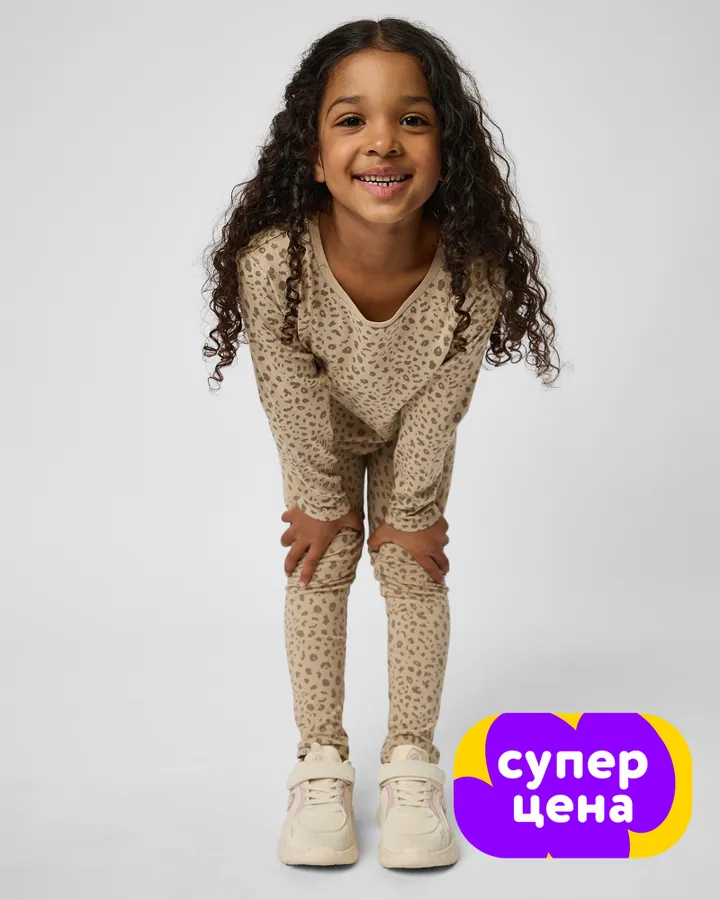 - Леггинсы для девочек — практичный вариант для активных игр или прогулок. Лонгслив с леггинсами создает удобный и комфортный образ.