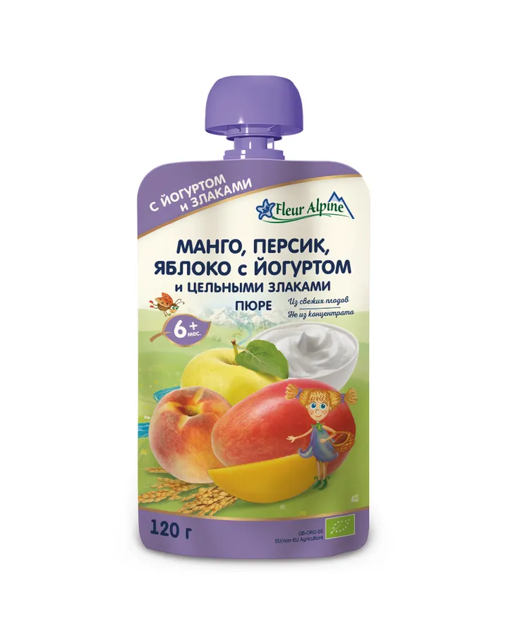 Пюре Fleur Alpine Органик манго-персик-яблоко-йогурт с 6 мес 120 г