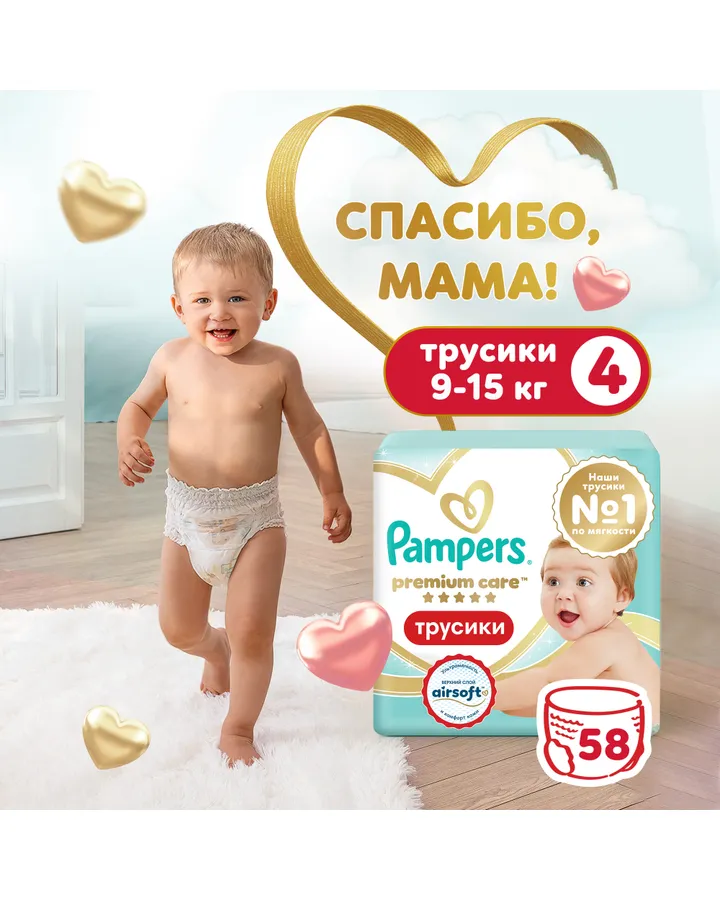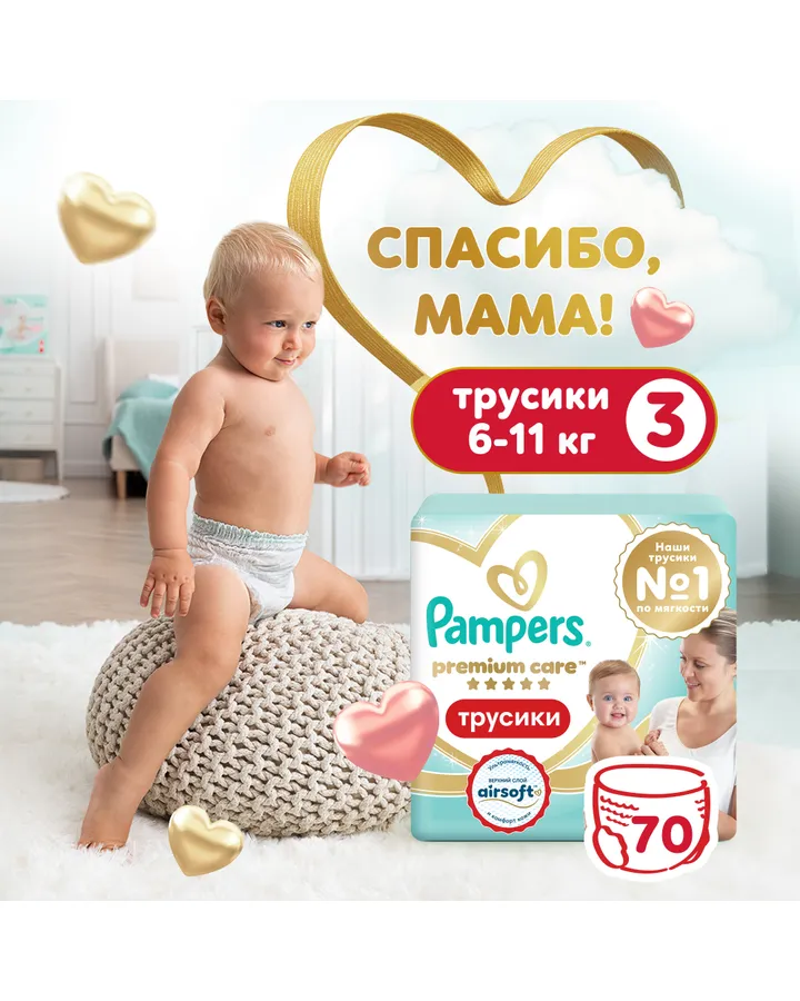 Доп. скидка 15% по промокоду на подгузники, трусики и салфетки Pampers