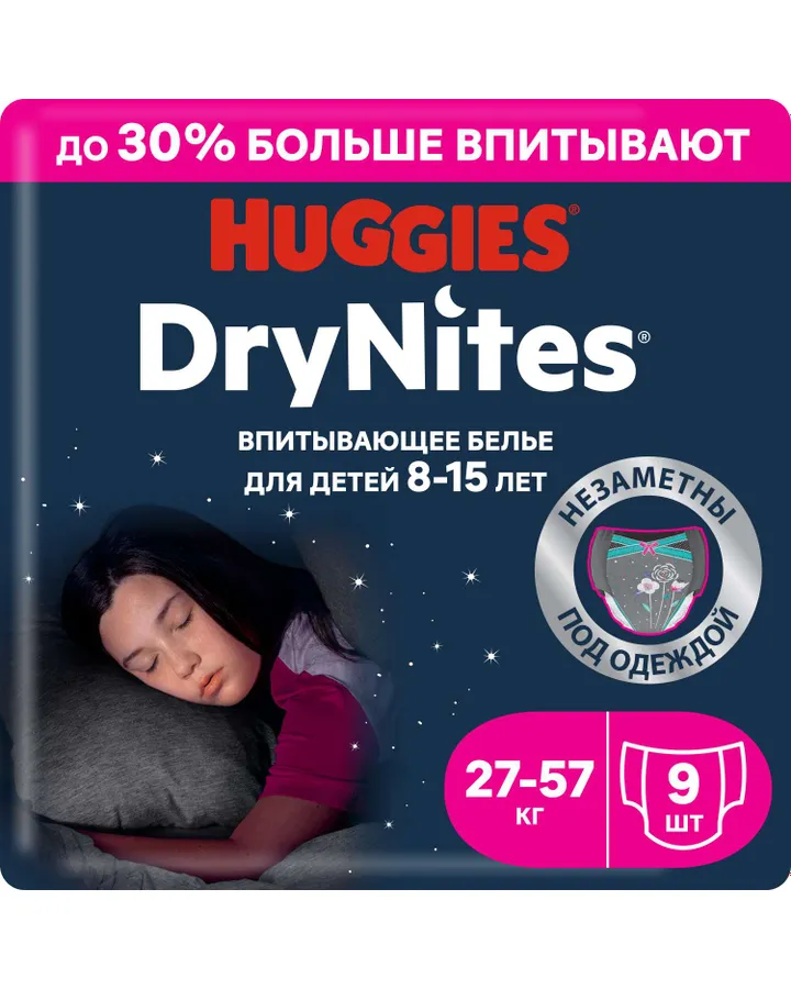 Трусики Huggies DryNites для девочек 7 (27-57 кг) 9 шт.