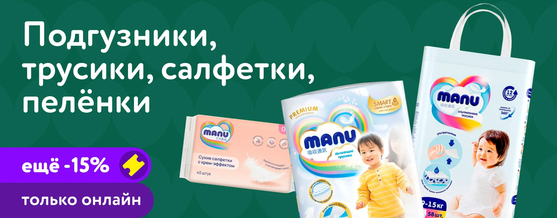 Подгузники MANU ультратонкие L (9-14 кг) 54 шт.