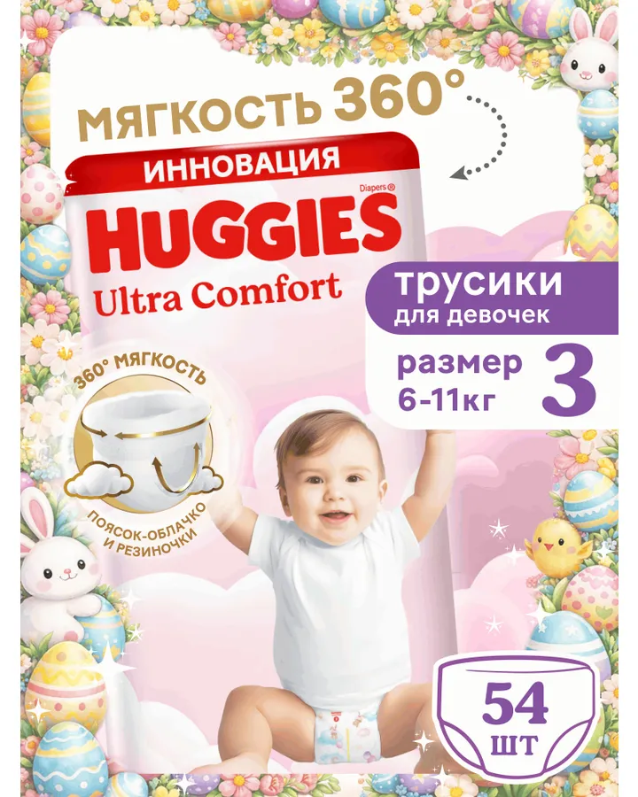 Трусики Huggies Ultra Comfort для девочек 3 (6-11 кг) 54 шт.