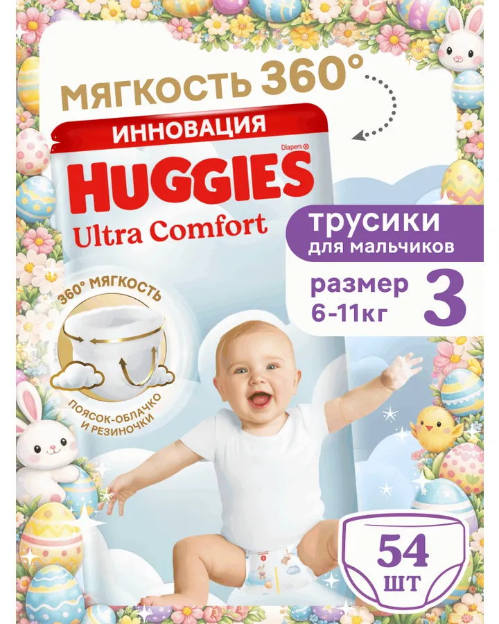 Трусики Huggies Ultra Comfort для мальчиков 3 (6-11 кг) 54 шт.
