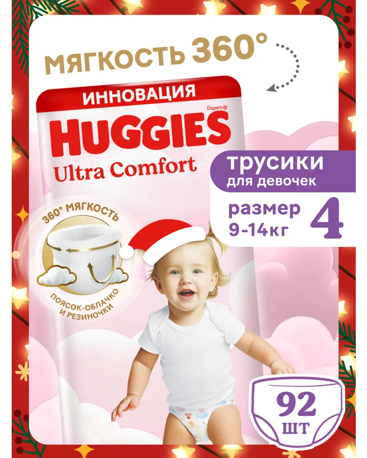 Трусики Huggies Ultra Comfort для девочек 4 (9-14) 92 шт.