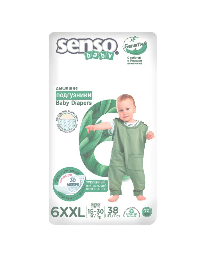 Подгузники SENSO BABY Sensitive XXL (15-30 кг) 38 шт.