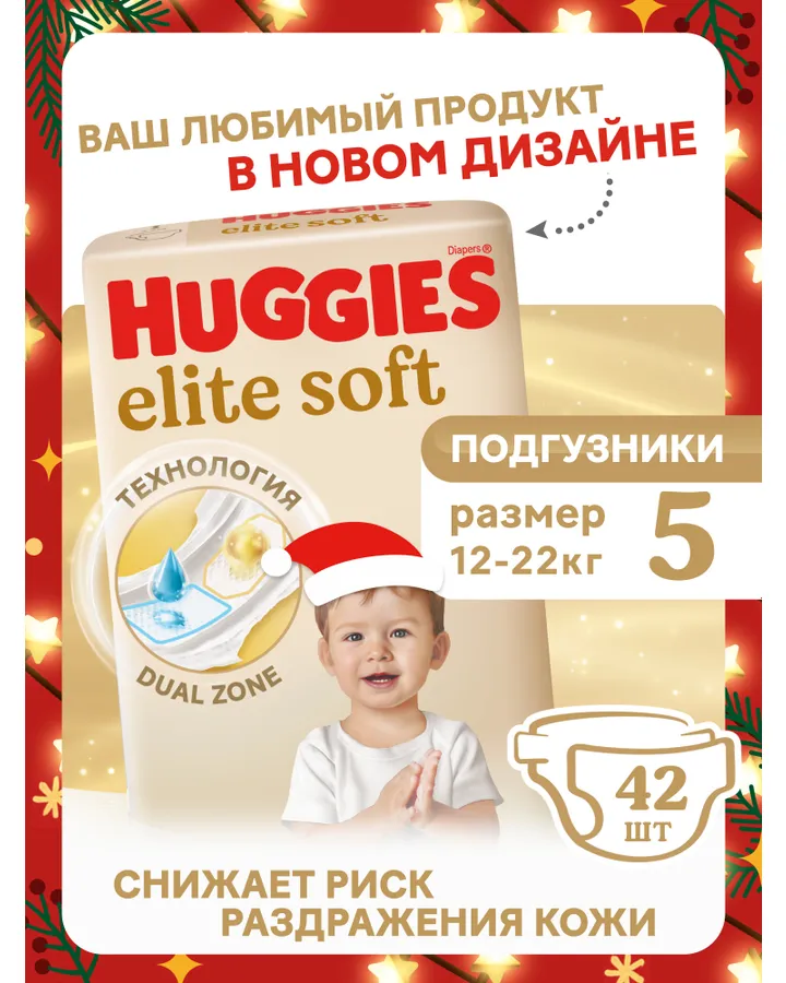 5Подгузники Huggies Elite Soft для новорожденных 2 (4-6 кг) 50 шт.