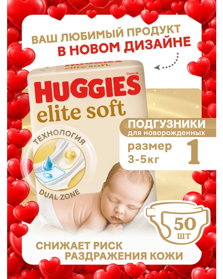 5Подгузники Huggies Elite Soft для новорожденных 2 (4-6 кг) 100 шт.👍