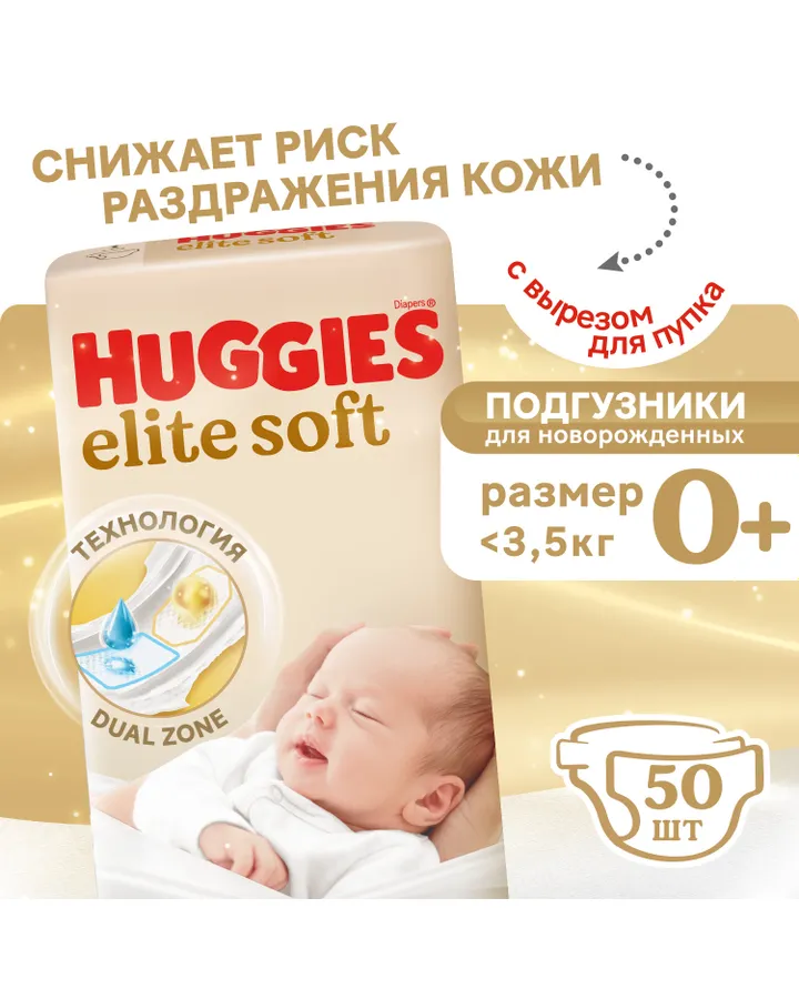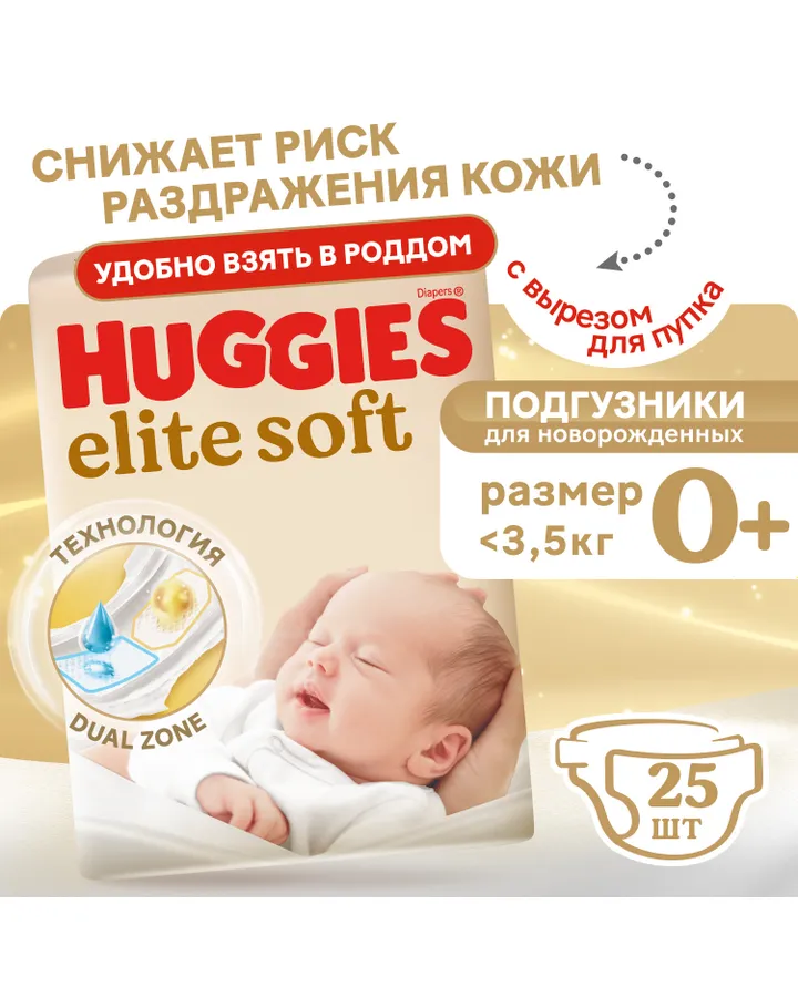 5Подгузники Huggies Elite Soft 0 (0-3,5 кг) 25 шт.Хорошие памперсы