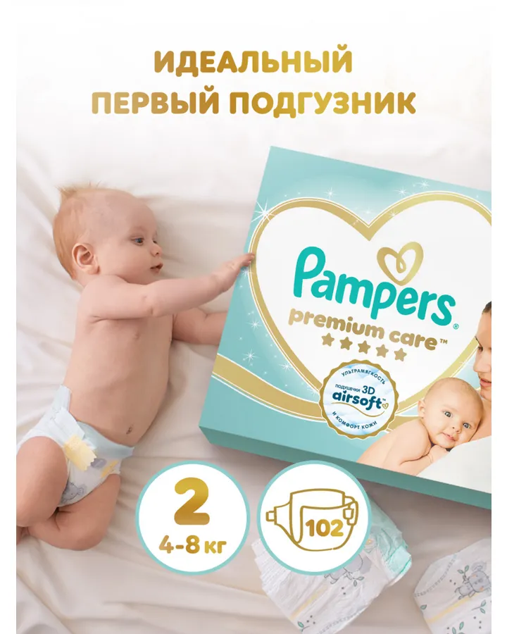 5Подгузники Pampers Premium Care 2 (4-8 кг) 66 шт.Отличные подгузники. Ребёнку подошли идеально