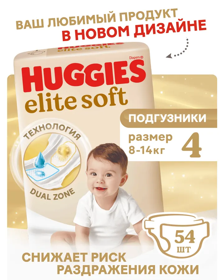 Подгузники Huggies Elite Soft 4 (8-14 кг) 54 шт.