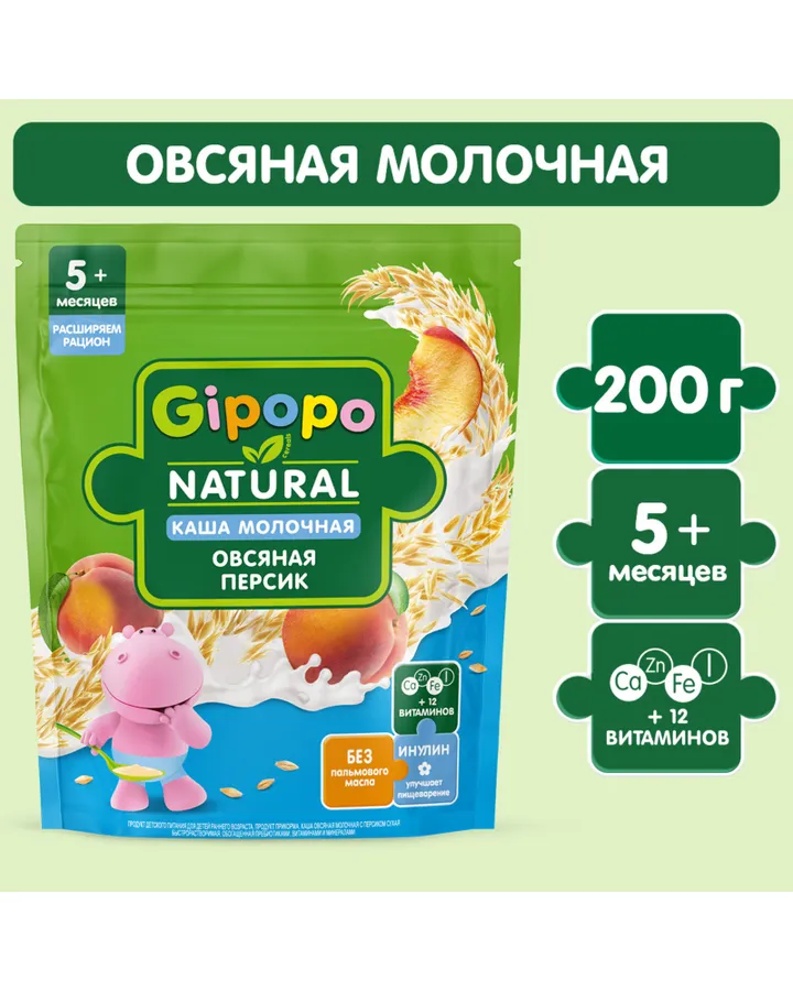Каша Gipopo молочная овсяная персик 200г с 5месяцев