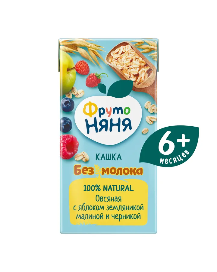 5Кашка безмолочная ФрутоНяня овсяная с яблоком-земляникой-малиной-черникой 0.2л с 6месяцев
