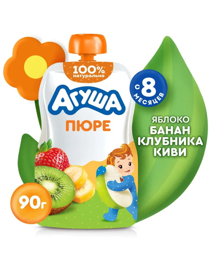 Пюре Агуша Яблоко-банан-клубника-киви с 8 мес 90 г