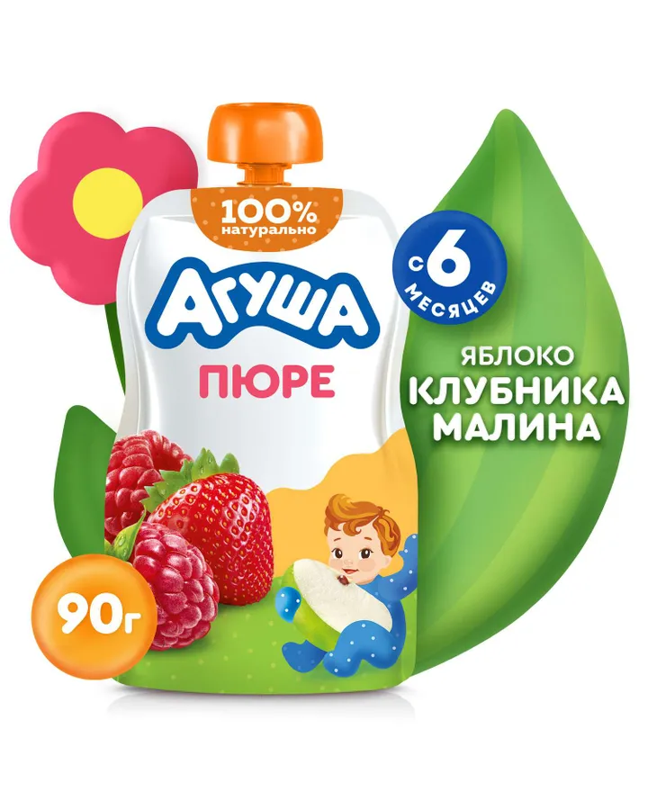 Пюре Агуша Яблоко-клубника-малина с 6 мес 90 г