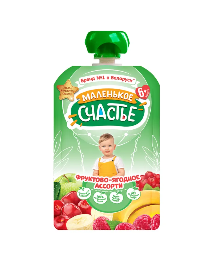 Пюре Маленькое счастье Фруктово-ягодное ассорти с 6 мес 90 г