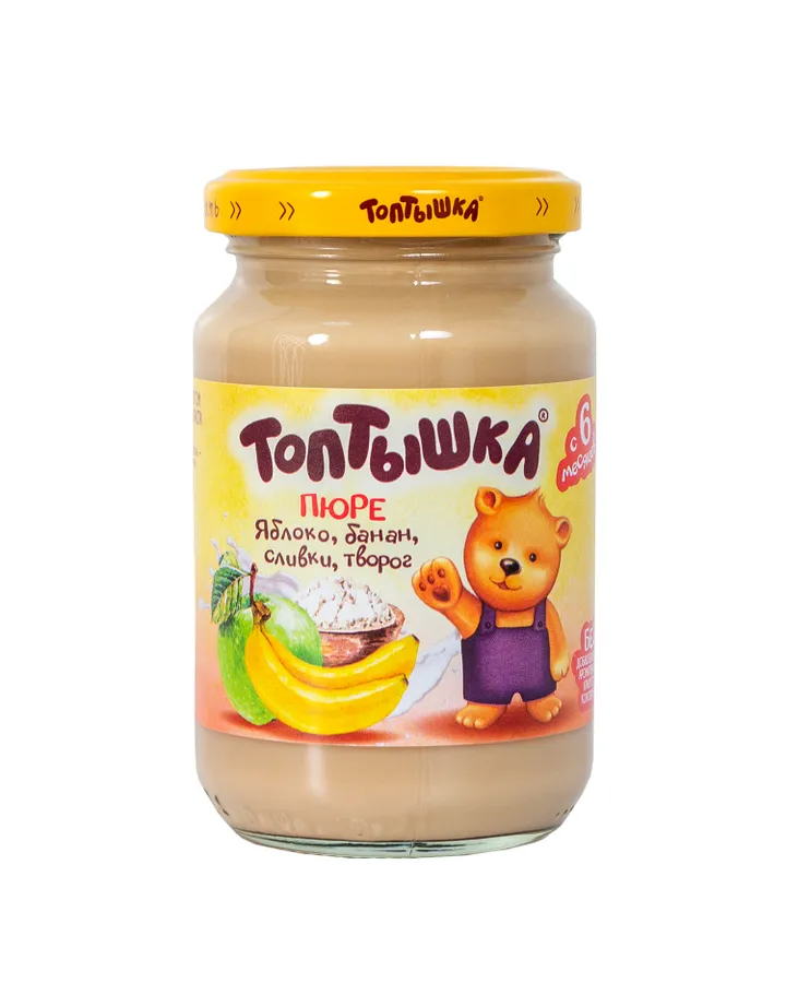 Пюре Топтышка Яблоко-банан-сливки-творог с 6 мес 190 г