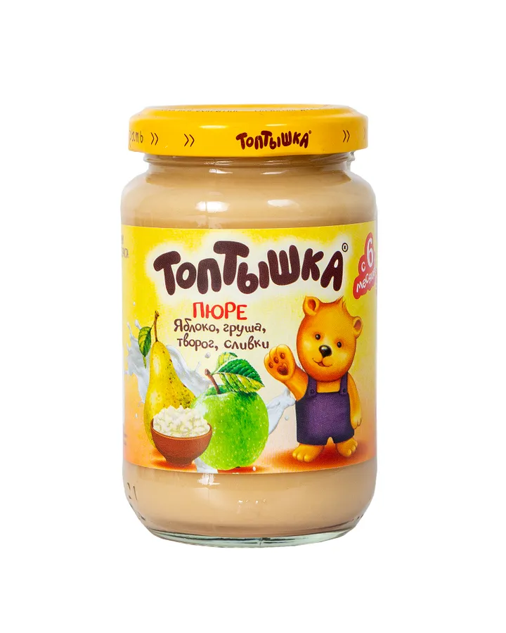 Пюре Топтышка Яблоко-груша-творог-сливки с 6 мес 190 г