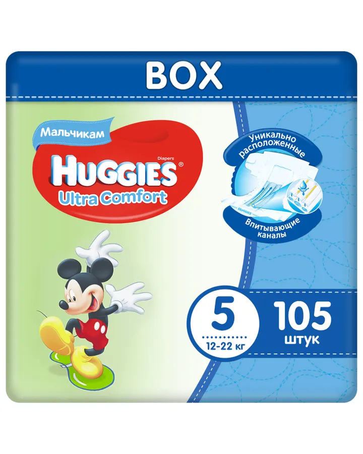 Подгузники Huggies Ultra Comfort для мальчиков 5 (12-22 кг) 105 шт.