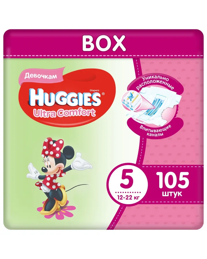 Подгузники Huggies Ultra Comfort для девочек 5 (12-22 кг) 105 шт.