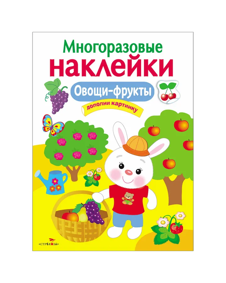 Книга СТРЕКОЗА Многоразовые наклейки Овощи-фрукты Дополни картинку