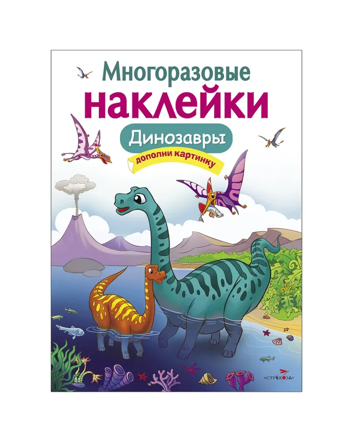 Книга СТРЕКОЗА Многоразовые наклейки Динозавры Дополни картинку