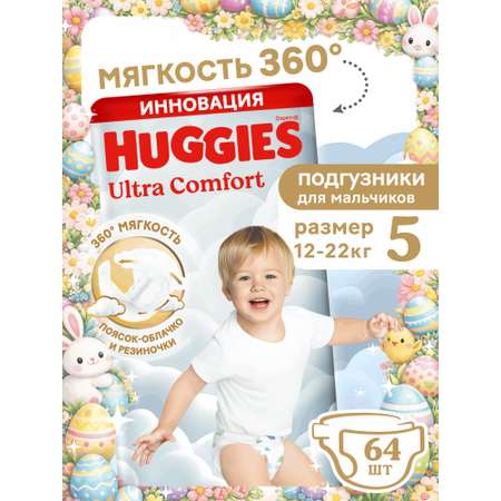Подгузники Huggies Ultra Comfort для мальчиков 5 (12-22 кг) 64 шт.
