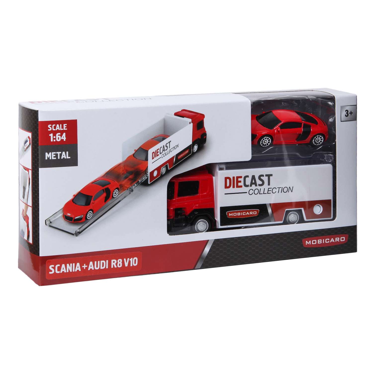 Набор Mobicaro Scania Launcher с машинкой Audi R8 – отличная компания. Спорткар и грузовик станут участниками интересных игровых сценариев.