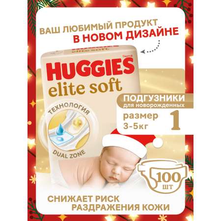 Подгузники Huggies Elite Soft для новорожденных 1 (3-5 кг) 100 шт. - фото 1