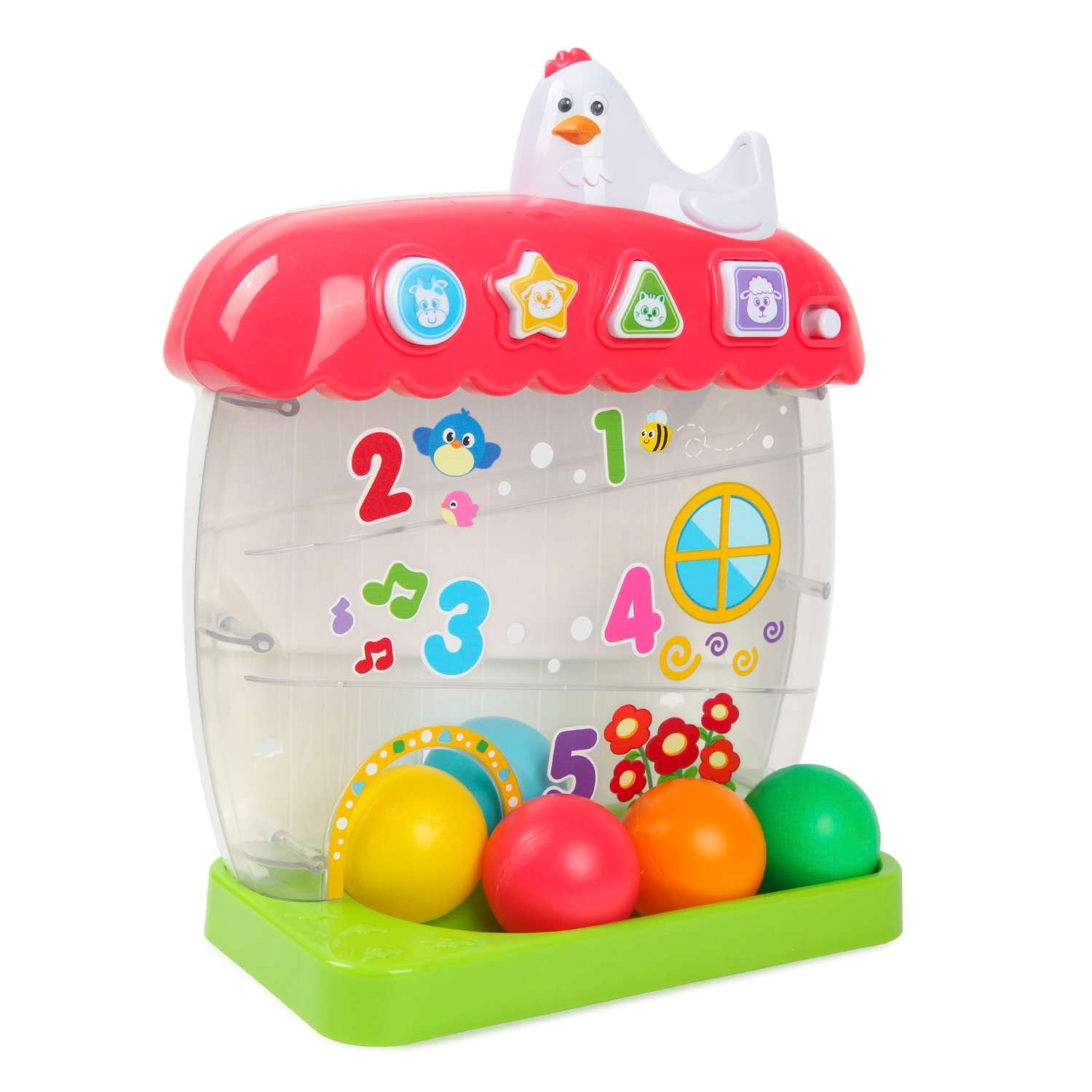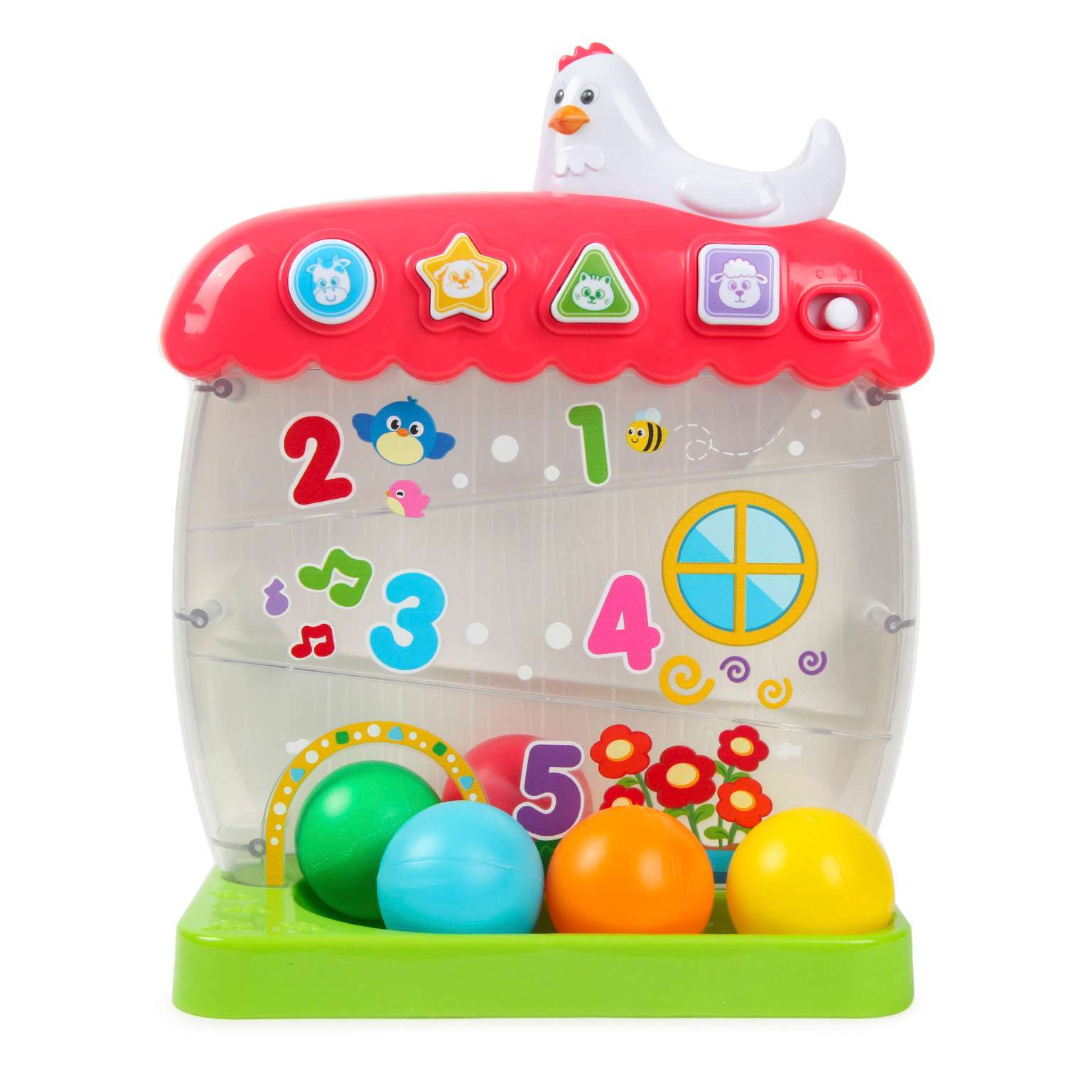 - Нет ни одного отзыва а жаль если бы увидела по отзывам сразу бы купила. Купили детям 2 года и 1 (старшая ещё и изучает цифры и цвета мы с ней проговариваем во время игры) . Играют с таким удовольствием, смотрят как катятся шарики, когда вставляешь шарик курочка кудахчет, потом скатывается по этажам детям так нравится я очень рада Очень залипательная игрушка!!!!! И ещё нажимают на кнопочки слушают как разговаривают животные и проигрываются мелодии. Очень классная игрушка!!!!!!!