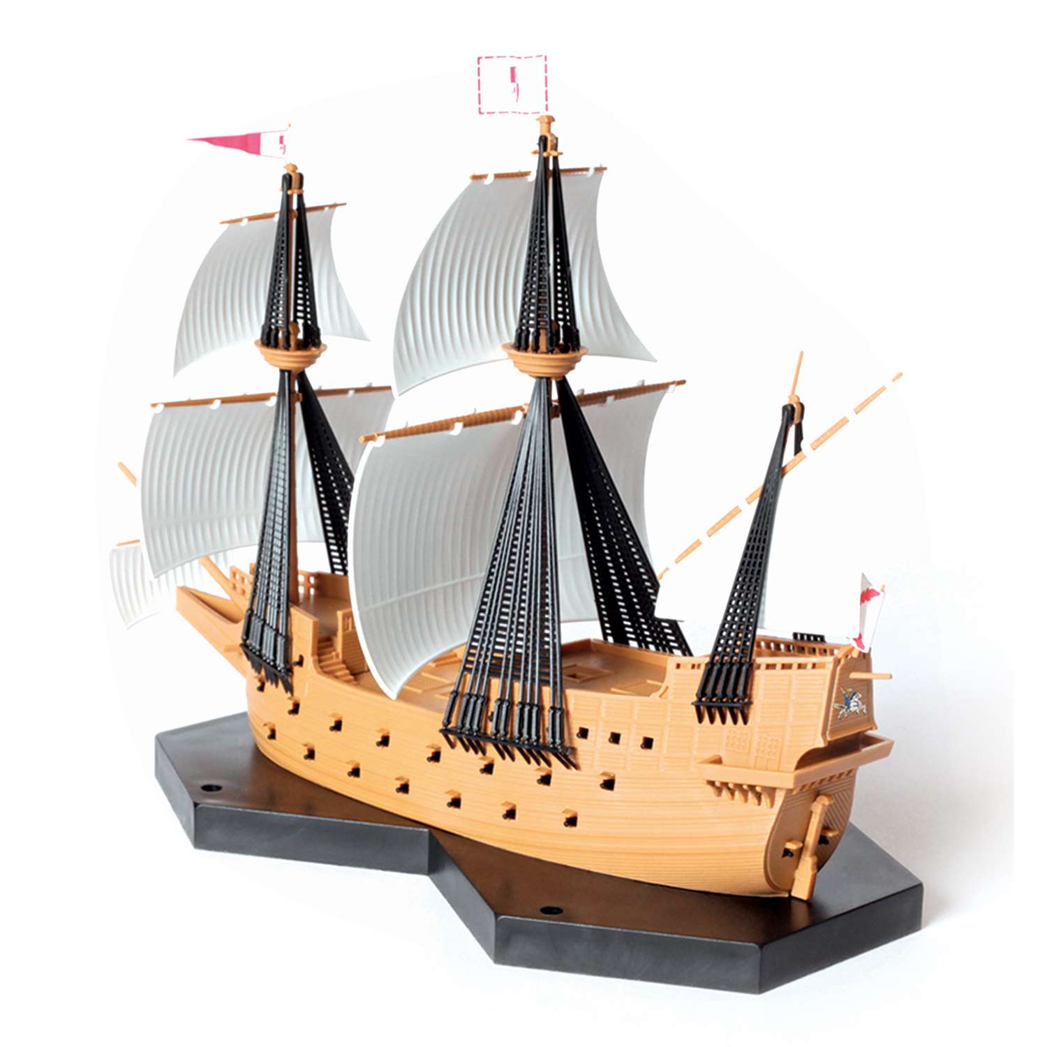 Галеону Сан-Мартин, с 52 пушками на борту и водоизмещением почти 1000 тонн, в конце 16 века было суждено стать флагманским кораблём Непобедимой армады. Тогда легендарный галеон был побеждён. Но история сберегла корабль и его эпоху. И сегодня шикарная модель знаменитого корабля может украсить любую полку.