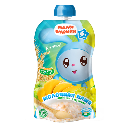 Каша готовая Маленькое счастье Малышарики овсяная с фруктами 111г с 6месяцев