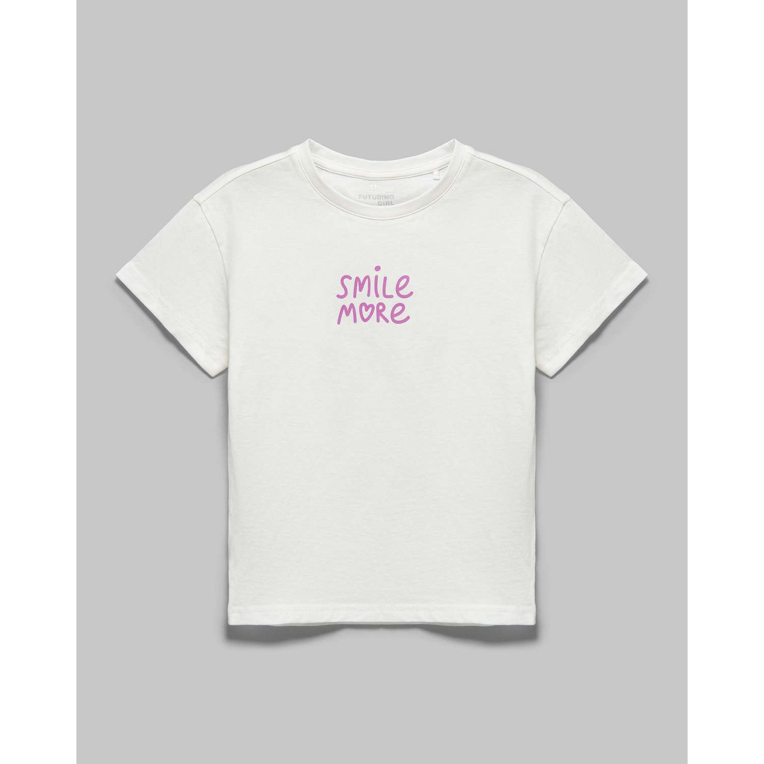 Белая футболка для девочки Futurino с надписью "Smile more".